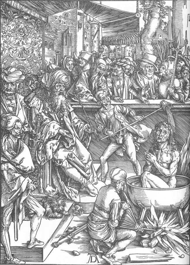 [9] In his woodcut of the Martyrdom of St. John, Dürer dresses the Roman Emperor Domitian in Ottoman dress; and in his Pilate Washing His Hands, Pontius Pilate is also given Ottoman dress, much as Bosch and others used Ottoman and Muslim motifs in their depictions of the crucifixion of Christ, an anachronism in all ways that made its contemporary point.