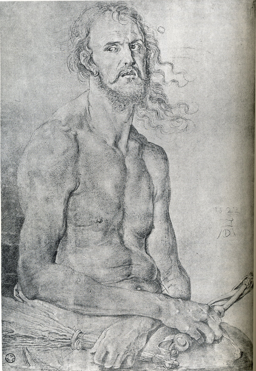 [12] The ego of someone like Dürer must at times have been prodigious (in his 1500 Self-Portrait, after all, he gives himself the look of Jesus). In 1512 and 1513, he tried to compose a sort of handbook for young artists; not surprisingly, he considered sight “the noblest sense of man,” and was able with all ease to pronounce that Germany possessed “many painters who stand in need of instruction, for they lack all real art”—although thankfully the rest of that sentence allows that “they nevertheless have many great works to make.”