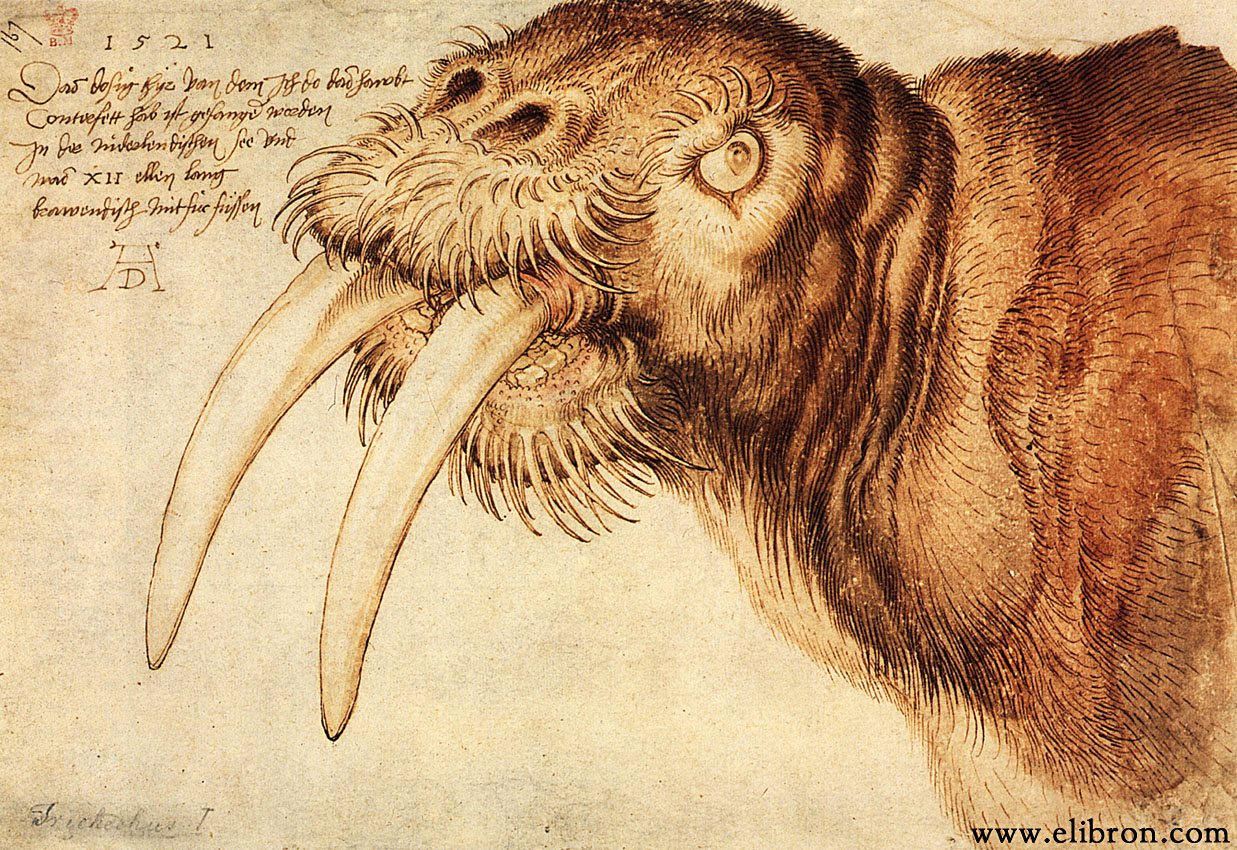 [6] Yet Dürer obviously also spent his life with color, as his watercolors and sketches of the natural and animal world attest: his Walrus, Hare, The Large Piece of Turf, and the companions Dead Blue Roller and Wing of a Blue Roller, among others.