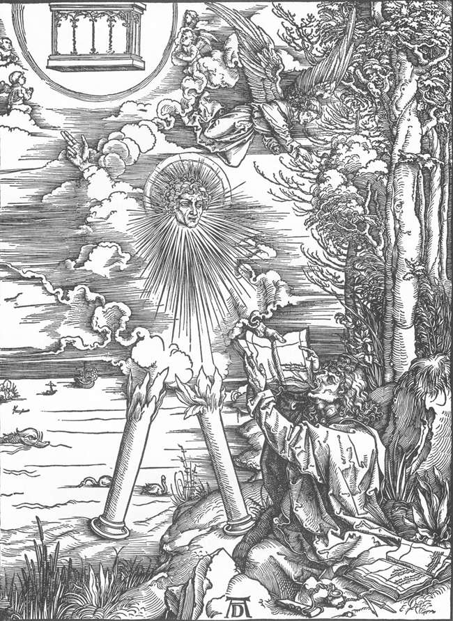 Indeed, his version of John the Baptist ignores his more dramatic execution and instead shows him serenely occupying a (Northern European) wilderness; his version of John of Patmos having the Book of Revelation dictated to him looks like a school lesson compared to Dürer’s version, where John is shown painfully swallowing scrolls; and his version of St. Anthony—also depicted in Northern Europe, rather than the deserts of Egypt—while indeed showing the demons with which that saint was tormented, nevertheless is also fairly serene, even sleepy.